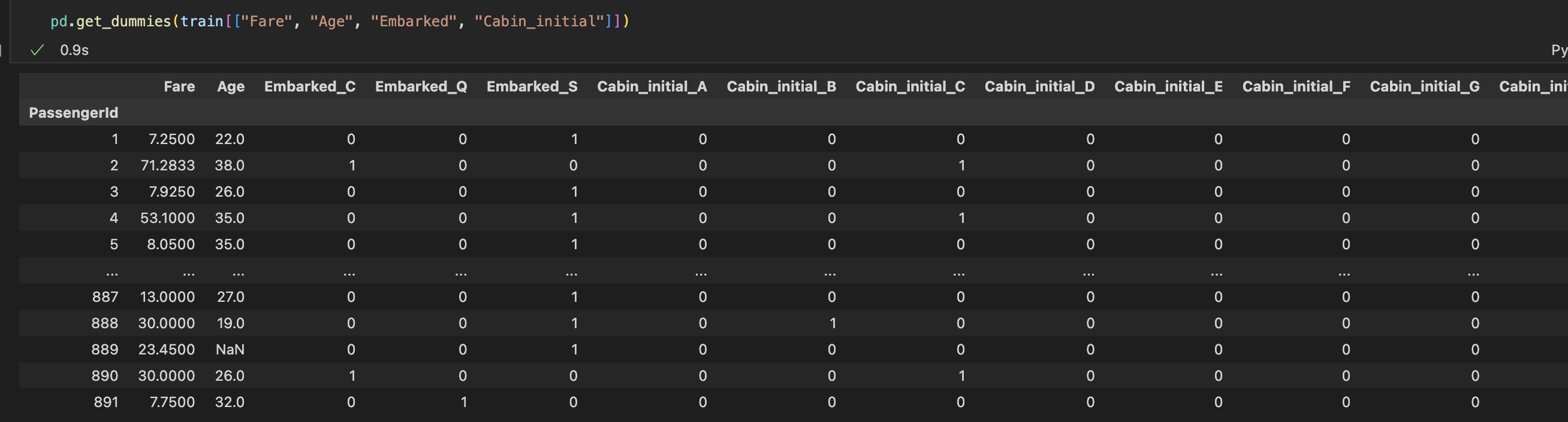 train["Embarked_S"] = train["Embarked"] == "S"